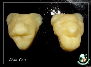 Далее приступаем к сборке - голову и лапки скрепляем с помощью сыра-косичка и продеваем сквозь тело.