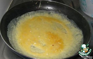 Жарим тонкие блинчики омлета из яиц и специй по вкусу.
