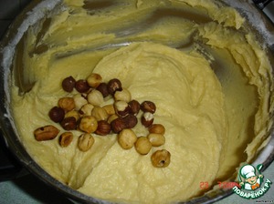 В готовое тесто добавить горсть лесных орехов (лучше немного измельчить, получились слишком крупные).