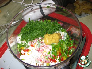 Творог взбить миксером (блендером) или протереть. Сливки взбить. Добавить в творог сливки, горчицу, соль, мелко рубленый укроп. Мелкие кусочки, обрезки рыбы мелко порезать, добавить в творог. Набухший желатин нагреть помешивая, не кипятить, процедить, добавить в творожную смесь, тщательно перемешать.