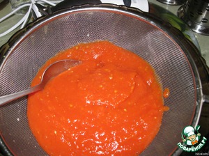 Желатин залить для набухания. Оставшиеся помидоры и массу помидорную прокипятить, взбить в блендере и (или) протереть через сито. Добавить соль, сахар, перец, специи желатин.