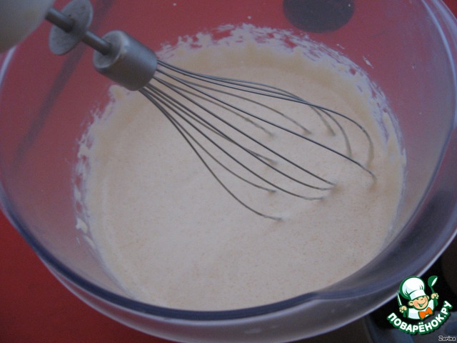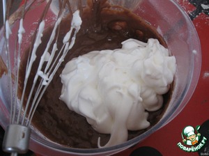 • Взбиваем белки в тугую пену и аккуратно вводим в тесто.