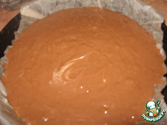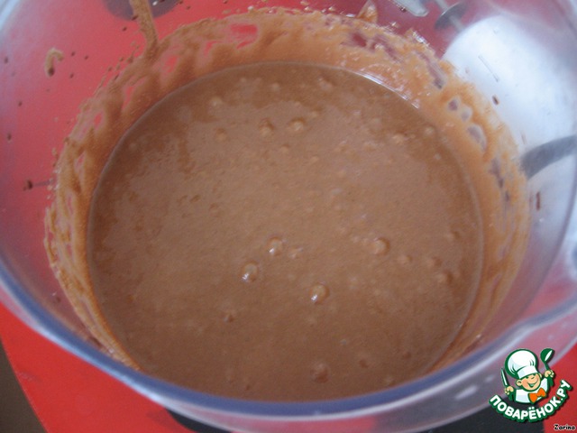 • Добавляем муку, разрыхлитель, какао, вымешиваем до консистенции густой сметаны.