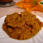 Воду с кабачков сцедить, добавить наш лучок, сунуть в кастрюлю блендер и все разбить в однородное пюре. Если у вас нет блендера, все интенсивно разминаем толкушкой для картошки. Мясорубку не советую - проклянете меня, когда из нее вытекать начнет на пол и на ваши тапочки