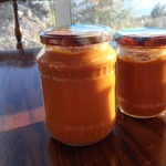 Горячим быстренько кладем в стерильные баночки и закатываем.