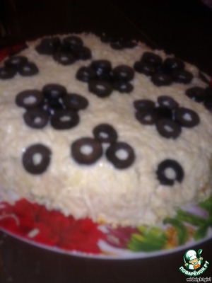 Сверху я украсила нарезанными маслинами, которые добавили еще свою изюминку.