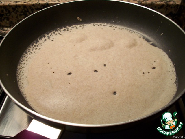 Оставляем тесто на час постоять. Затем выпекаем блины. Если у вас хорошая сковорода, смазывать ее маслом не обязательно, блинчики не должны прилипать. Выпеченные блины лучше смазать сливочным маслом, чтобы не прилипли друг к другу.