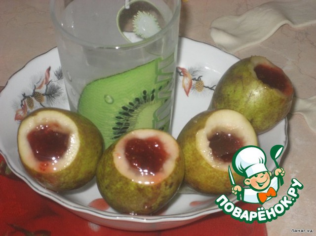 • В каждую грушу положить по кофейной ложке клубничного варенья.