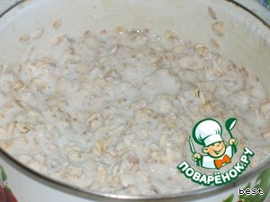 Овсянные хлопья залить кефиром и оставить на 30 минут.