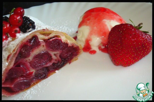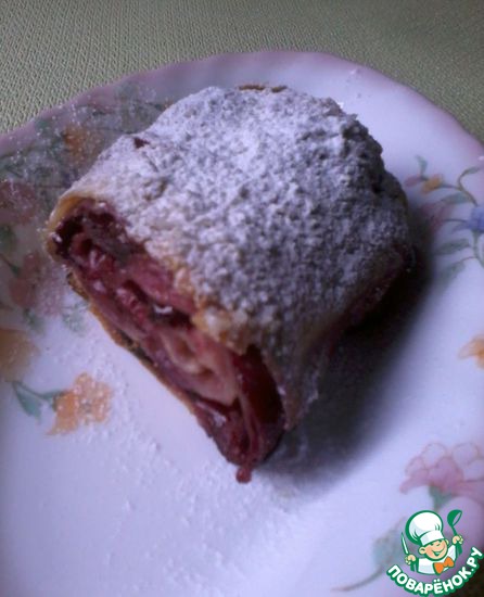 Рецепт «Штрудель вишневый из вытяжного теста»:
