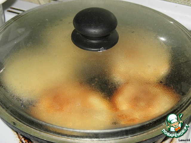 Далее накрываем крышкой и даем сырникам прогреться и подняться.