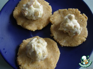 Из массы с печеньем сформовать небольшие лепешки, в которые завернуть "ядрышки".
