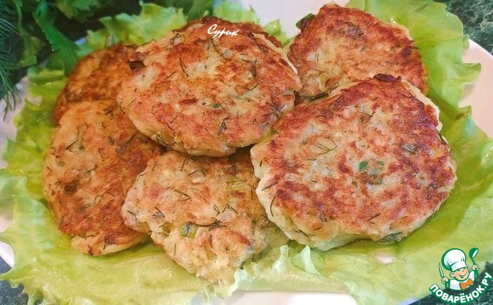 Выложить на раскаленную сковороду в форме оладьев и поджарить с обеих сторон до золотистой корочки.