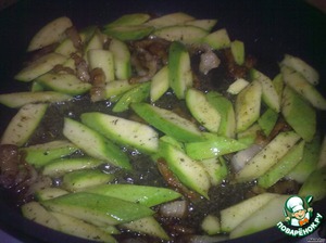 Добавляем цуккини к бекону и тушим мин 3-5.