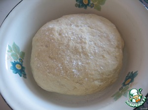 Когда тесто увеличилось примерно в 2 раза снимаем его, еще разок надо бы перемесить и начинаем раскатывать, придавая ему форму прямоугольника, толщиной примерно с 0,5 см. Бабушка мне всегда напоминает: чем труднее раскатать тесто, чем сильнее оно "убегает" обратно и чем труднее оно принимает желаемую форму - значит оно очень хорошо вымешенное.