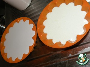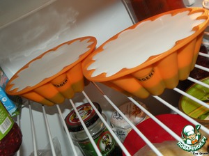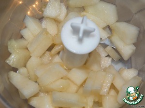 Превращаем в пюре посредством блендера выбранный Вами фрукт, в моем случае это была дынька. Пюре вымешиваем с подготовленной ранее массой и заливаем чуть больше половины в форму как второй слой на застывший шоколадный. Ставим в холодильник до застывания.