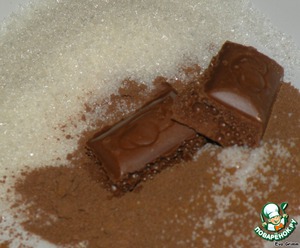 1-2 столовые ложки сахара, какао (при желании можно добавить и ванильный сахар или пудру, как сделала я), плюс шоколад (по желанию) растопим в горячем желатине, дадим подостыть… Заливаем в форму и ставим в холодильник до застывания (примерно 30 минут, можно на 10 минут в конце поставить в морозилочку)