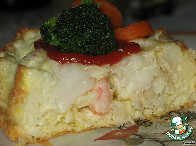 Описание: Очень красиво, воздушно и вкусно! Нам с мужем так понравилось это блюдо, что мы решили его повторить на следующий день. Правда, начинку я сделала немного другую: крабовое мясо и рыбное филе. Попробуйте, и я уверена, вам тоже понравится!
