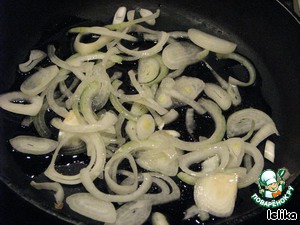 Репчатый лук нарезаем и обжариваем на небольшом количестве растительного масла. -