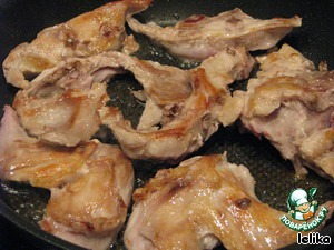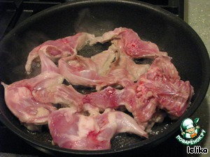Нарезанного порционными кусками кролика выложить на разогретую и смазанную маслом сковороду