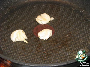 Очистить чеснок, раздавить зубчик плоскостью ножа и выложить на горячую сковороду.