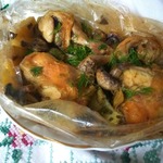 Укладываем пакет в емкость, для подстраховки от неожиданностей, и ставим в духовой шкаф, разогретый до 180 градусов на 1 час 30 мин.