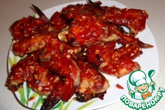 На тарелку, куда будем выкладывать мясо, наливаем 1 /3 соуса и аккуратно (оно может порваться) выкладываем кусочки мяса. Сверху разбрызгиваем оставшийся соус. Даем настояться 15 минут.