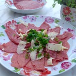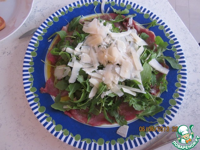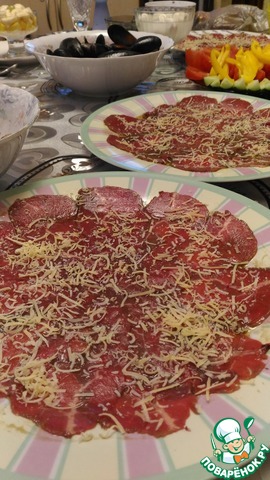 Строганину тоже никогда не пробовала, поэтому трудно сравнивать. А мясо все равно получается уже не сырое, оно же промариновывается, т.к. нарезано очень-очень тонко, как пергаментная бумага!!