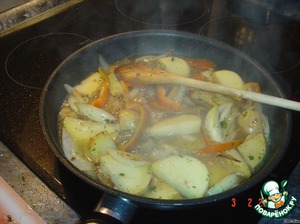 5. Влить бульон, посолить, поперчить и, кто любит, добавить зелень.