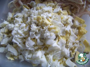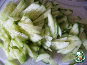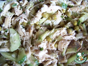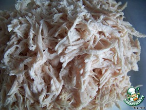 Куриное филе разбираем на волокна (или просто нарезаем, кому как нравится).