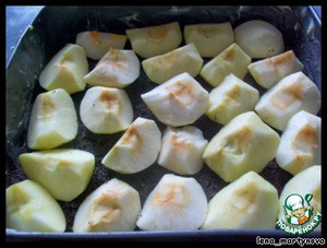 Яблоки чистим от кожуры, удаляем сердцевину, режем крупными кусками и выкладываем на мак. -