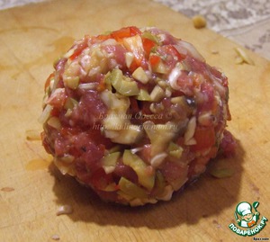 Мясо, при необходимости, освобождаем от пленок. Мясо измельчаем. Некоторые делают это в мясорубке, но лучше, запасаясь терпением, использовать нож. В этом случае мясо не потеряет сок.