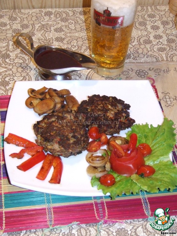 После легкого суфле хочется сурового, матерого мяса. Итак, вооружаемся терпением, наливаем в бокал вкусного прохладного пива и приступаем...,