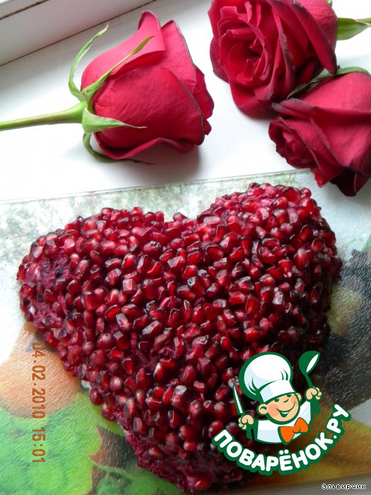 А помните, как в песне... "Сердце, Тебе не хочется покоя, Сердце, Как хорошо на свете жить, Сердце, Как хорошо, что ты такое, Спасибо, сердце, Что ты умеешь так любить. " Это так душевно... и создавая этот салат, Своему Валентину, - я пела именно еe.