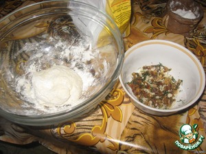 Тесто делаем так - сметану, соль, растопленное масло, соду и разрыхлитель смешать, муки добавить столько, чтобы получилось нежное тесто (если будет липнуть припорошите мукой, зато потом булочки будут нежными!). Тесто положить в холодильник и приготовить начинку - сало выжарить до шкварок, отцедить от масла, добавить крошку хлебную, укроп и перемешать