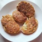 Смешайте манку, бульонный кубик ( у меня 1 ч.л. бульона Роллтон), молоко, яйцо, добавьте лук.