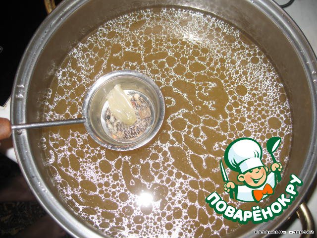 • Через 1,5 часа варки опускаем специи и соль.