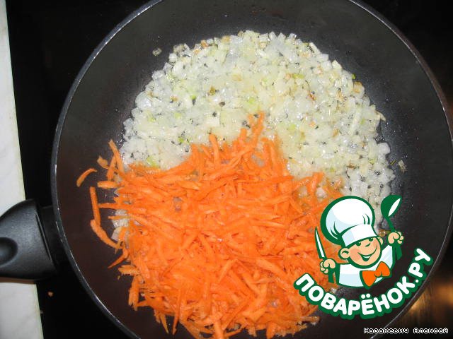 • К нему присоединяем тертую морковь …