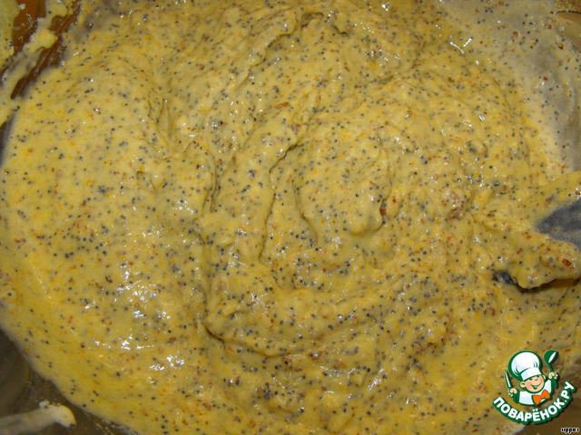 Чтобы приготовить бисквит: смешать муку, разрыхлитель, миндаль и мак.
