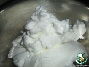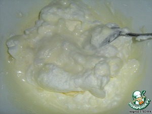 Аккуратно вводим белки в желтковую смесь, добавляем муку и все хорошо перемешиваем.