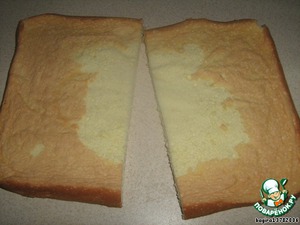выкладываем тесто в прямоугольную форму 20x30, которую выстилаем смазанным маслом пергаментом, и выпекаем при 170 градусах 10 минут. Бисквит должен оставаться светлым, желательно, белым.