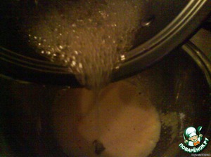 Процеженную смесь возвращаем в кастрюльку, и варим на водяной бане до загустения. Я варила просто на плите, в кастрюльке, на слабом огне.