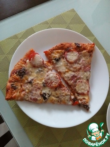 Когда мы беремся за приготовление пиццы? Правильно, когда в холодильнике накопились остатки различных продуктов, которых на самостоятельное блюдо не хватит. А вот в пиццу - в самый раз!!! Дежурное блюдо, что, однако, совершенно его не портит. A еще я готовлю пиццу, когда слышу от сына: "Мама! Что-то у нас давно пиццы не было!" Давно - это примерно неделю!