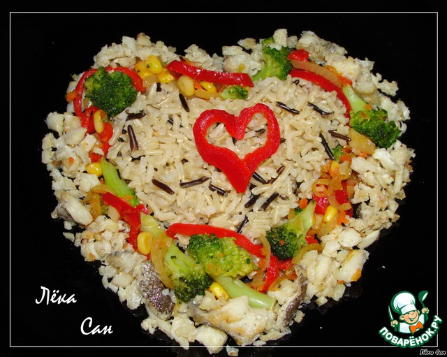 Треска с овощами и диким рисом "Горячие сердца"