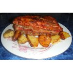 Мясо выложить на противень и намазать соусом, поставит в духовку на 20-25 минут при температуре 220 градусов.