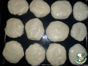 Укладываем швом вниз на смазанный подсолнечным маслом противень, сверху смазываем яйцом и посыпаем кунжутом (у меня его не было).
