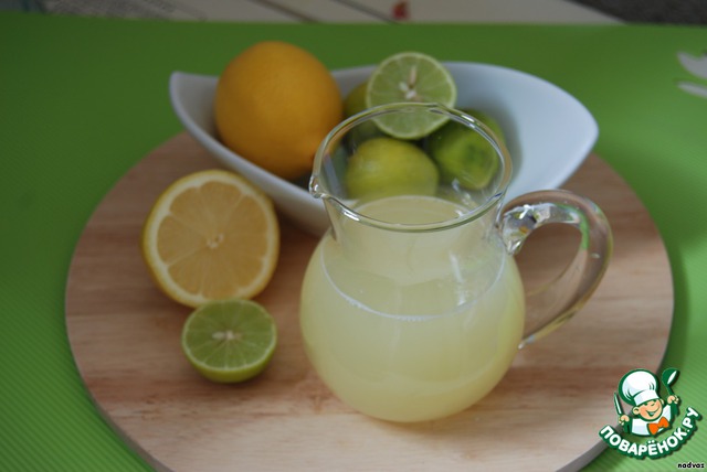 Выдавить лимонный сок. Я смешала лимон и лайм. В рецепте сока лишь четверть стакана, я взяла полстакана.