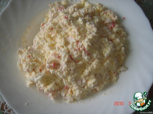 крабовые палочки и сыр натираем на терке и перемешиваем с майонезом до однородной массы.