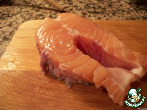 Приготовим рыбку. Важно, чтобы оба сорта рыбы были разных цветов. Я брала белую тилапию и красный лосось. Тилапию помоем и высушим.