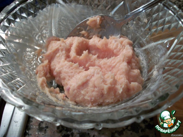 Перемалываем в блендере, но не добавляем ни сливок, ни яйца. Эта рыба жирней и держится прекрасно и без добавок.